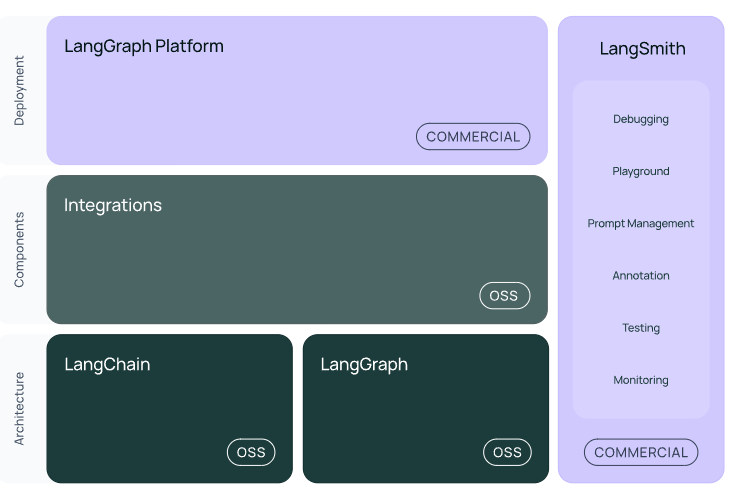 # LangChain多任务应用开发 ## 💡 学习目标 1. 如何使用 LangChain:一套在大模型能力上封装的工具框架 2. 如何用几行代码实现一个复杂的 AI 应用 3. 面向大模型的流程开发的过程抽象 ## 写在前面 - LangChain 也是一套面向大模型的开发框架(SDK) - LangChain 是 AGI 时代软件工程的一个探索和原型 - 学习 LangChain 要关注接口变更 ## LangChain 的核心组件 1. 模型 I/O 封装 - Chat Models:对语言模型接口的封装 - PromptTemple:提示词模板 - OutputParser:解析输出 2. 数据连接封装(弱于 LlamaIndex) - Document Loaders:各种格式文件的加载器 - Document Transformers:对文档的常用操作,如:split, filter, translate, extract metadata, etc - Text Embedding Models:文本向量化表示,用于检索等操作 - Verctorstores & Retrievers:向量数据库与向量检索 3. 架构封装 - Chain/LCEL:实现一个功能或者一系列顺序功能组合 - Agent:根据用户输入,自动规划执行步骤,自动选择每步需要的工具,最终完成用户指定的功能 - Tools:调用外部功能的函数,例如:调 google 搜索、文件 I/O、Linux Shell 等等 - LangGraph:工作流开发框架 5. LangSmith:过程监控与调试框架  ### 文档(以 Python 版为例) - 功能模块:https://python.langchain.com/docs/tutorials - API 文档:https://python.langchain.com/api_reference/ - 三方组件集成:https://python.langchain.com/docs/integrations/providers/ - 更多 HowTo:https://python.langchain.com/docs/how_to/ ### LangChain 是开源项目 项目地址:https://github.com/langchain-ai ## 1. 模型 I/O 封装 把不同的模型,统一封装成一个接口,方便更换模型而不用重构代码。 ### 1.1 模型 API: ChatModel #### 1.1.1 OpenAI 模型封装 ```python # !pip install -U langchain # !pip install -U langchain-openai ``` ```python from langchain.chat_models import init_chat_model model = init_chat_model("gpt-4o-mini", model_provider="openai") response = model.invoke("你是谁") print(response.content) # 我是一个人工智能助手,旨在提供信息和回答问题。如果你有任何问题或需要帮助,随时可以问我! ``` #### 1.1.2 多轮对话 Session 封装 ```python from langchain.schema import ( AIMessage, # 等价于OpenAI接口中的assistant role HumanMessage, # 等价于OpenAI接口中的user role SystemMessage # 等价于OpenAI接口中的system role ) messages = [ SystemMessage(content="你是AI大模型课的课程助理。"), HumanMessage(content="我是AI学员,我叫小聚。"), AIMessage(content="欢迎!"), HumanMessage(content="我是谁?") ] ret = model.invoke(messages) print(ret.content) # 你是AI的学员,小聚。很高兴见到你!有什么我可以帮助你的吗? ``` <div class="alert alert-success"> <b>划重点:</b>通过模型封装,实现不同模型的统一接口调用 </div> #### 1.1.3 DeepSeek 模型封装 ```python # !pip install -U langchain-deepseek ``` ```python from langchain.chat_models import init_chat_model model = init_chat_model(model="deepseek-chat", model_provider="deepseek") response = model.invoke("你是谁") print(response.content) # 我是DeepSeek Chat,由深度求索公司开发的智能AI助手!✨ 我的使命是帮助你解答各种问题,无论是学习、工作,还是日常生活中的小疑惑,我都会尽力提供准确、有用的信息。 # 有什么我可以帮你的吗?😊 ``` #### 1.1.4 流式输出 ```python for token in model.stream("你是谁"): print(token.content, end="") # 我是DeepSeek Chat,由深度求索公司创造的智能AI助手!🤖✨ 我的使命是帮助你解答问题、提供信息、陪你聊天,还能处理各种文本和文件。无论是学习、工作,还是日常生活中的疑问,我都会尽力帮你解决!有什么想问的,尽管来吧~ ``` #### 1.1.5 通义千问模型封装 1. OpenAI兼容接口 ```python from langchain_openai import ChatOpenAI import os chatLLM = ChatOpenAI( api_key=os.getenv("DASHSCOPE_API_KEY"), base_url="https://dashscope.aliyuncs.com/compatible-mode/v1", model="qwen-plus", # 此处以qwen-plus为例,您可按需更换模型名称。模型列表:https://help.aliyun.com/zh/model-studio/getting-started/models # other params... ) messages = [ {"role": "system", "content": "You are a helpful assistant."}, {"role": "user", "content": "你是谁?"}] response = chatLLM.invoke(messages) response ``` ```python AIMessage(content='我是通义千问,阿里巴巴集团旗下的通义实验室自主研发的超大规模语言模型。我可以帮助你回答问题、创作文字,比如写故事、写公文、写邮件、写剧本、逻辑推理、编程等等,还能表达观点,玩游戏等。如果你有任何问题或需要帮助,欢迎随时告诉我!', additional_kwargs={'refusal': None}, response_metadata={'token_usage': {'completion_tokens': 66, 'prompt_tokens': 26, 'total_tokens': 92, 'completion_tokens_details': None, 'prompt_tokens_details': {'audio_tokens': None, 'cached_tokens': 0}}, 'model_name': 'qwen-plus', 'system_fingerprint': None, 'id': 'chatcmpl-37010fed-34c9-96ba-ac5c-f257e40aef30', 'service_tier': None, 'finish_reason': 'stop', 'logprobs': None}, id='run--0124e2f8-c7f3-47bd-987e-62a46c1f56fe-0', usage_metadata={'input_tokens': 26, 'output_tokens': 66, 'total_tokens': 92, 'input_token_details': {'cache_read': 0}, 'output_token_details': {}}) ``` 2. DashScope 接口 ```python # !pip install langchain-community # !pip install dashscope ``` ```python from langchain_community.chat_models.tongyi import ChatTongyi from langchain_core.messages import HumanMessage chatLLM = ChatTongyi( model="qwen-max", # 此处以qwen-max为例,您可按需更换模型名称。模型列表:https://help.aliyun.com/zh/model-studio/getting-started/models streaming=True, # other params... ) res = chatLLM.stream([HumanMessage(content="hi")], streaming=True) for r in res: print("chat resp:", r.content) # chat resp: Hello # chat resp: ! How can # chat resp: I assist 