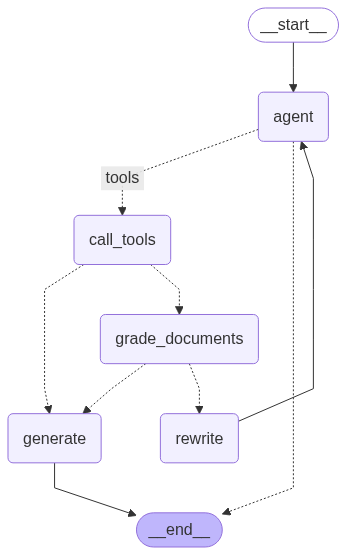 # 基于LangGraph实现智能分诊系统 ## 一、项目概述 ### 1.1 项目流程 流程如下图所示:  1. 用户输入问题,进入 agent 分诊节点进行用户意图分析 2. 若需调用工具,则调用 call_tools 节点进行工具并行执行;否则直接回复用户问题结束 3. 工具调用后,根据工具类型进行路由: - 检索类工具:进入 grade_documents 进行相关性评分,若相关则路由到 generate 节点,否则rewrite(最多3次) - 非检索类工具:直接路由到 generate 节点 4. 生成最终回复并输出 ### 1.2 核心功能 **(1)核心功能:基于状态图的对话流程** 定义了一个包含多个节点(Node)和边(Edge)的对话工作流,节点包括: - agent:分析用户问题并决定是否调用工具 - call_tools:并行执行工具调用 - grade_documents:评估检索到的文档与问题的相关性 - rewrite:重写用户查询以改进问题(查询意图识别查询改写) - generate:生成最终回复 - 动态路由: - tools_condition:根据用户查询意图识别是否需要调用工具 - route_after_tools:根据工具调用结果决定下一步是生成回复还是评分文档 - route_after_grade:根据文档相关性评分决定生成回复还是重写查询 **(2)工具调用与并行处理** - 工具配置:通过 ToolConfig 类管理工具列表和路由配置,支持动态路由(检索类工具路由到grade_documents,其他路由到generate) - 并行工具节点:ParallelToolNode 使用线程池(ThreadPoolExecutor)并行执行多个工具调用,提高效率,支持最大工作线程数配置(默认5) **(3)数据库与持久化存储** - 连接池管理:使用 ConnectionPool 管理 PostgreSQL 数据库连接,支持自动提交、超时设置和连接池状态监控(monitor_connection_pool) - 线程内持久化:通过PostgresSaver保存对话状态检查点 - 跨线程持久化:通过PostgresStore存储用户记忆(store_memory),支持记忆搜索和存储(如用户输入包含“记住”时保存) - 重试机制:数据库操作使用tenacity库实现重试(最多3次,指数退避等待),提高健壮性 **(4)自然语言处理与提示模板** - 语言模型:通过get_llm获取聊天模型(llm_chat)和嵌入模型(llm_embedding),用于处理用户输入和生成回复 - 提示模板:使用create_chain函数加载并缓存提示模板文件(如代理、重写、评分、生成模板),支持结构化输出(如DocumentRelevanceScore) - 消息过滤:filter_messages过滤消息,仅保留AIMessage和HumanMessage,限制最多保留5条历史消息 **(5)日志与错误处理** - 日志记录:使用 logging 模块和 ConcurrentRotatingFileHandler 记录详细日志(DEBUG级别),支持文件轮转(5MB,3个备份),后续可以自己实现日志归档 - 错误处理:多层次异常捕获(如数据库连接、工具调用、状态访问等),记录错误并提供默认路由或提示用户 **(6)用户交互与响应输出** - 主循环:main 函数实现交互式对话,用户输入后通过graph_response处理并输出响应,支持退出命令(quit、exit、q) - 响应区分:区分工具输出(显示工具名称)和大模型输出(普通回复),提升用户体验 **(7)辅助功能** 可视化:通过save_graph_visualization将状态图保存为PNG文件,便于调试 配置管理:通过Config类统一管理日志文件路径、数据库URI、提示模板路径等配置 ## 二、项目环境准备 ### 2.1 创建Conda环境 ```bash conda create -n L1-project-2 python=3.11 ``` ### 2.2 安装项目依赖库 ```bash pip install langgraph==0.2.74 pip install langchain-openai==0.3.6 pip install langchain-community==0.3.19 pip install langchain-chroma==0.2.2 pip install pdfminer pip install pdfminer.six pip install nltk==3.9.1 pip install psycopg2==2.9.10 pip install concurrent-log-handler==0.9.25 pip install langgraph-checkpoint-postgres pip install psycopg psycopg-pool ``` ### 2.3 使用Docker运行PostgreSQL数据库 1)进入官网 https://www.docker.com/ 下载安装Docker Desktop软件并安装,安装完成后打开软件 Docker Desktop 安装参考:https://www.cnblogs.com/yinzhengjie/p/17889373.html 2)打开命令行终端,找到 PostgreSQL 的 docker 配置文件 `docker-compose.yml` 3)运行 `docker-compose up -d` 命令后台启动 PostgreSQL 数据库服务。运行成功后可在Docker Desktop软件中进行管理操作或使用命令行操作或使用指令 *若要删除容器在命令行终端中运行 `docker-compose down --volumes`* 4)因为 LangGraph 中 PostgresStore 需要使用到 pgvector,因此需要在docker容器中按照如下步骤进行操作,直接使用Docker Desktop软件中进行操作 1. 安装依赖 ```shell apt update apt install -y git build-essential postgresql-server-dev-15 ``` 2. 编译并安装 pgvector ```shell git clone --branch v0.7.0 https://github.com/pgvector/pgvector.git cd pgvector make make install ``` 3. 验证安装,检查扩展文件是否安装成功 ```shell ls -l /usr/share/postgresql/15/extension/vector* ``` 最后一行显示:**`/usr/share/postgresql/15/extension/vector.control`** 表示安装成功! 4. 系统环境中需要安装PostgreSQL 的开发库 **`libpq`** ,因为 psycopg 需要它来编译或运行,根据自己的操作系统选择进行安装。 1)在 Windows 上安装 PostgreSQL 的开发库 **`libpq`**(即客户端库和头文件),可以通过以下两种方法实现: --- ### 方法 1:安装完整的 PostgreSQL 服务器 这是最简单的方法,安装 PostgreSQL 时会自动包含 `libpq` 库和开发文件。 #### 步骤: 1. **下载 PostgreSQL 安装包** 访问 PostgreSQL 官方下载页面: [https://www.postgresql.org/download/windows/](https://www.postgresql.org/download/windows/) 选择适合你系统的版本(如 **PostgreSQL 15.x**)。 2. **运行安装程序** - 双击下载的 `.exe` 文件(如 `postgresql-15.x-x-windows-x64.exe`)。 - 在安装向导中,**勾选以下组件**: - ✅ **PostgreSQL Server**(可选,如果不需要数据库服务可跳过) - ✅ **Command Line To