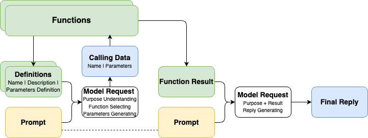 # Function Calling与Agent 智能体 ## 💡 学习目标 1. 理解Function Calling的概念 2. 理解Function Calling的工作原理 3. 实战使用OpenAI提供的Function Calling接口(基础请求及优化) 4. 探讨自定义Function的提供的可能性 5. 探讨Function Calling在大模型应用场景中带来的“质变” 6. 智能体/LLM应用的定义与作用 - 什么是智能体?智能体与大模型的关系是什么样的 - 智能体概念的演进过程,基本架构与功能 7. 智能体开发框架smolagents 8. Agentic RAG 实战 9. 智能体的应用场景 - 探讨智能体在行业场景中的落地情况 - 探讨智能体系统/LLM应用的常见分类 ## 1. Function Calling的概念 Function Calling(函数调用),顾名思义,为模型提供了一种调用函数的方法/能力。 - Function Calling成立的模型能力基础: - 问题理解和行动规划 - 结构化数据输出 - 上下文学习 In-Context Learning Function Calling让模型输出不再局限于自身推理输出,而是可以与外部系统交互,完成更复杂的任务 - 常见Function Calling应用场景包括: - 查询检索,补充额外信息(如RAG、搜索) - 理解用户输入,向外部系统写入信息(如表单填写) - 调用外部系统能力,完成实际行为动作(如下订单) ## 2. Function Calling的工作原理 ### 2.1 OpenAI官方定义 OpenAI官方说明文档:https://platform.openai.com/docs/guides/function-calling  ### 2.2 描述Function Calling的另一个流程图  ### 2.3 Calling是结果,理解和选择才是第一步 - 除了代表用户诉求的Prompt之外,Function Calling还需要将可用的工具信息(Function Definitions)也提供给模型 - 在第一次请求时,模型的核心工作如下: 1. 理解Prompt所代表的“诉求”和Definitions所代表的“行动可能性” 2. “选择”完成“诉求”所需要进行的“行动”(从“行动可能性”中获得) 3. 根据所选择的“行动”,给出执行“行动”所需的“行动参数”(Parameters) - 那么想一想: 1. 什么影响“选择”的效果? 2. 什么影响“行动”的可执行性和效果? ### 2.4 作为可选项的结果回调和最终回复输出 - 在对话流中,将Function Calling的结果(Function Result)与初始的Prompt诉求再次组合,提供给模型以获得最终的回复输出,是常见的流程(RAG就是一个典型的例子) - 但如果我们将Function Calling用于非对话流场景,最终回复输出就不一定是必选项了,例如: 1. 【只需要完成Calling动作】我们只是希望通过Function Calling完成行动选择和发起,接下来就进入业务处理流程,例如:理解用户表达并代替用户下单 2. 【只需要完成行动参数Parameters生成】我们只是希望将Function Calling做好工具使用决策,并完成部分请求参数的生成,接下来需要走业务流程补全其他参数(比如鉴权信息),例如:敏感数据查询 在实际生产中,不给出最终回复输出,而只是使用Function Calling返回的调用方法数据,是很常见的用法。 ## 3. 实际调用Function Calling ### 从官方案例开始 #### 第一步:工具决策和调用信息生成 ```python import os from openai import OpenAI client = OpenAI( api_key=os.getenv("OPENAI_API_KEY"), base_url=os.getenv("OPENAI_BASE_URL"), ) # 给出工具定义 tools = [ # 每一个列表元素项,就是一个工具定义 { # 类型标注(固定格式) "type": "function", # 函数定义 "function": { # 函数名称(帮助我们去查找本地的函数在哪里,函数映射ID) "name": "get_weather", # 函数描述(帮助模型去理解函数的作用,适用场景,可以理解为Prompt的一部分) "description": "Get current temperature for provided coordinates in celsius.", # 函数依赖参数的定义(帮助模型去理解如果要做参数生成,应该怎么生成) "parameters": { # 参数形式 "type": "object", # 对应输出JSON String # 参数结构 "properties": { # 参数名,参数类型 "latitude": {"type": "number"}, # 参数名,参数类型 "longitude": {"type": "number"} }, # 必须保证生成的参数列表(每个元素对应上面properties的参数名) "required": ["latitude", "longitude"], "additionalProperties": False }, # 格式是否严格(默认为True) "strict": True } } ] # 给出诉求表达 messages = [{"role": "user", "content": "What's the weather like in Shanghai today?"}] #messages = [{"role": "user", "content": "How are you today?"}] #messages = [{"role": "user", "content": "请告诉我北京的经纬度"}] #messages = [{"role": "user", "content": "What's the weather like today?"}] # 发起请求 completion = client.chat.completions.create( model="gpt-4o", messages=messages, # 把工具定义提交给模型,就已经默认启用了Function Calling tools=tools, ) # print(completion.choices[0].message) # print(completion.choices[0].message.tool_calls[0].function) if completion.choices[0].message.tool_calls: print(completion.choices[0].message.tool_calls[0].function) else: print("No function is called.") # Function(arguments='{"latitude":31.2304,"longitude":121.4737}', name='get_weather') ``` ```python - 情况1:问与工具的无关的问题会发生什么? - `messages = [{"role": "user", "content": "How are you today?"}]` - 情况2:问无法获得确切行动参数的问题会发生什么? - `messages = [{"role": "user", "content": "What's the weather like today?"}]` - 如何容错: ```python if completion.choices[0].message.tool_calls: print(completion.choices[0].message.tool_calls[0].function) else: print("No function is called.") ``` ``` #### 第二步:实际调用工具 ```python function_calling_message = completion.choices[0].message function_calling = completion.choices[0].message.tool_calls[0] print("Call Function Name:", function_calling.function.name) print("Call Function Arguments:", function_calling.function.arguments) # Call Function Name: get_weather # Call Function Arguments: {"latitude":31.2304,"longitude":121.4737}